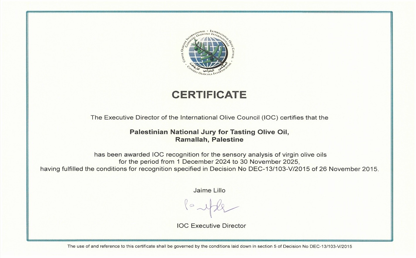 This international recognition helps unify national and international regulations concerning the physical, chemical, and organic characteristics of olive oil products, thereby reducing technical barriers to the trade of olive oil and facilitating access to external markets, especially in Europe based on sensory evaluation. Moreover, Palestinian producers can now carry out sensory tests provided by the institution at nominal costs, whereas previously, conducting these tests abroad incurred high expenses for Palestinian producers.